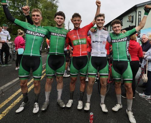 Team Ireland celebrates victory in Rás Tailteann 2023 after the final stage in Blackrock |