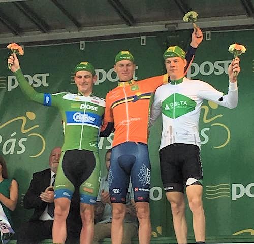 Prezimislaw Kasperkiewicz, An Post Chain Reaction 3rd, Nicolai Nielsen, Denmark Riwal Platform Cycling stage winner & Dennis Bakker, Netherlands Team Delta 2nd. |