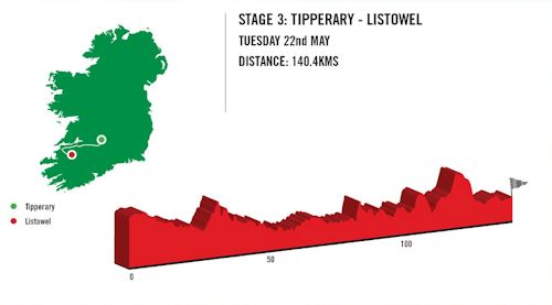 Stage 3, Tuesday May 22: Tipperary to Listowel, 140.4 kms