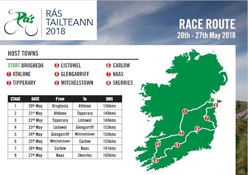 Rás Tailteann route 2018 (UCI 2.2 race):