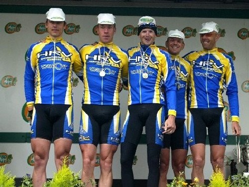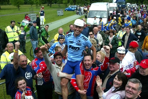 Michael Concannon President Cycling Ireland, Roberta Rowat,Seamus McCormack with the happiest man in the Phoenix Park Bill Moore after receving his stage jersey and prize |