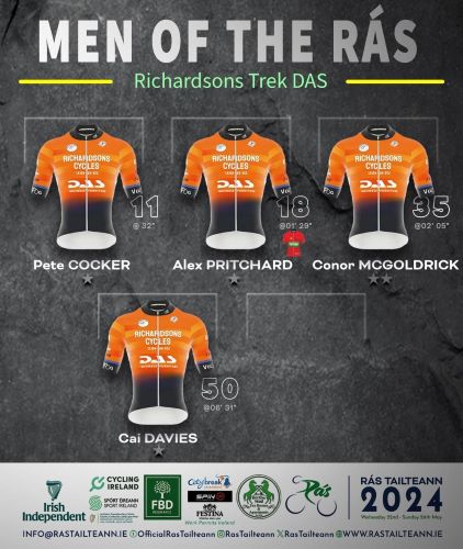 Dom Jackson UK Foran C C Overall Winner Of The 2024 Rás Tailteann In A Time of 17-03-28. His Team Were Placed 13 @ 41-03 |