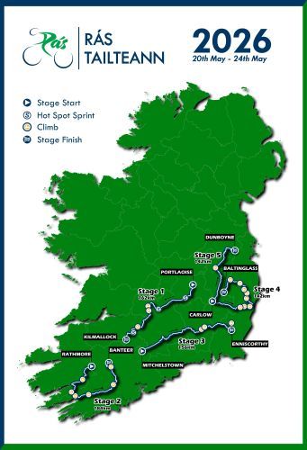 After crossing the finish line for the first time, the riders will tackle three laps of a demanding and technical 15KM circuit, where the final stage winner and overall champion of Rás Tailteann 2026 will be crowned.