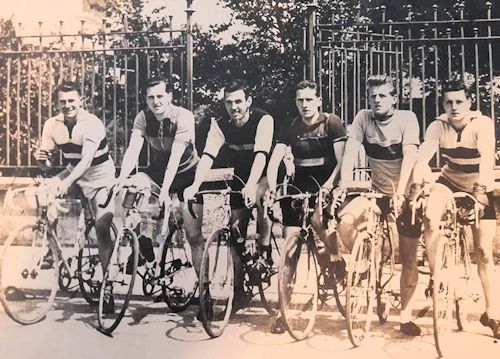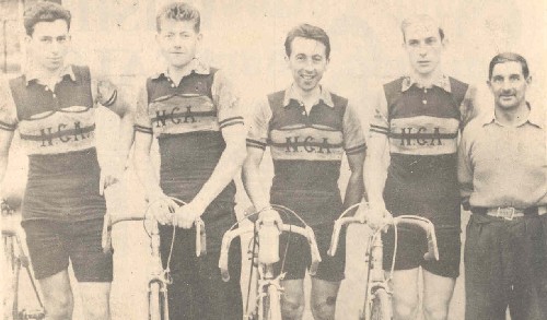 The Tyrone 1958 Rás Team Left to right Paddy Campbell Dungannon, Seamus Devlin Coalisland,Stage winner 1958, Joe McIvor Dungannon, Stage winner 1954 Tommy Drumm Dungannon and Ned Devlin Coalisland trainer.
