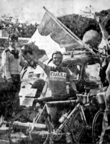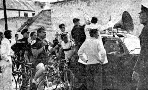 ‘Batons, bottles and battling bystanders came the way of the cyclists in the second stage (Newry to Armagh) of the NCA’s 8-day RÁS TAILTEANN which was to have gone round Lough Neagh to Armagh yesterday. Instead of a 106 miles stage, they raced only 24 miles to Lurgan, then ‘toured’ as far as cookstown in Co. Tyrone, where the race was broken up when the cyclists were attacked by a large crowd.