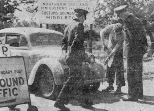 The Ulster Team car being forced to remove a tricolour pennant before leaving Nothern Ireland the following morning.