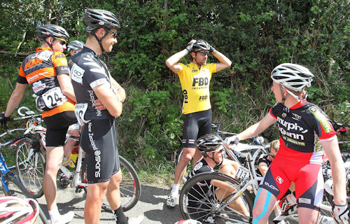Several minutes before the crash, the break had crested the top of the climb with Irish rider Stephen O’Sullivan leading them across the summit. Yesterday’s runner-up Mark McNally was second over the prime line, and he and his An Post Grant Thornton M. Donnelly Sean Kelly team were driving the pace onwards in order to preserve their advantage and overcome his seven second deficit to Craven.