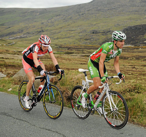Stage Winner Mark Cassidy, An Post Sean Kelly Team Leads Jakob Steigmiller, Team Thuringer Energie On The Wicklow Gap