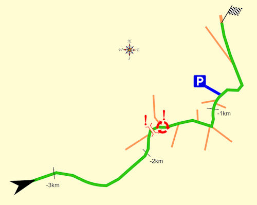 After passing through Prosperous plus the aptly-named Painstown and Dunshaughlin, the riders will race on towards the first of four fourth-category climbs. Pluckhimin (km. 77.7) is followed by Cross of the Cage (km. 97), which comes just before the entry to the 13.8 kilometre finishing circuit.