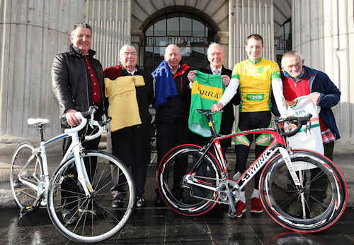 A number of ‘Rás legends’ including ‘Iron Man’ Mick Murphy, four times winner Sé O’Hanlon and the first ever winner of the race, Colm Christle, joined rising Irish star Sam Bennett at the GPO today to celebrate the launch of the 60th edition of the Rás.