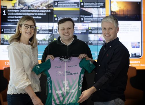 | Gearóid Campbell, Cairde Rás Tailteann, is joined by Arlene Regan, Marketing Manager at Mediahuis Ireland and Ciarán Lennon, Group Sports Editor (Daily) of the Irish Independent. (Photographer: David Conachy). |