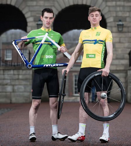 | Ronan McLaughlin Aqua Blue Academy & Eoin Morton UCD Fitzcycles at the launch of the 2017 An Post Rás |
